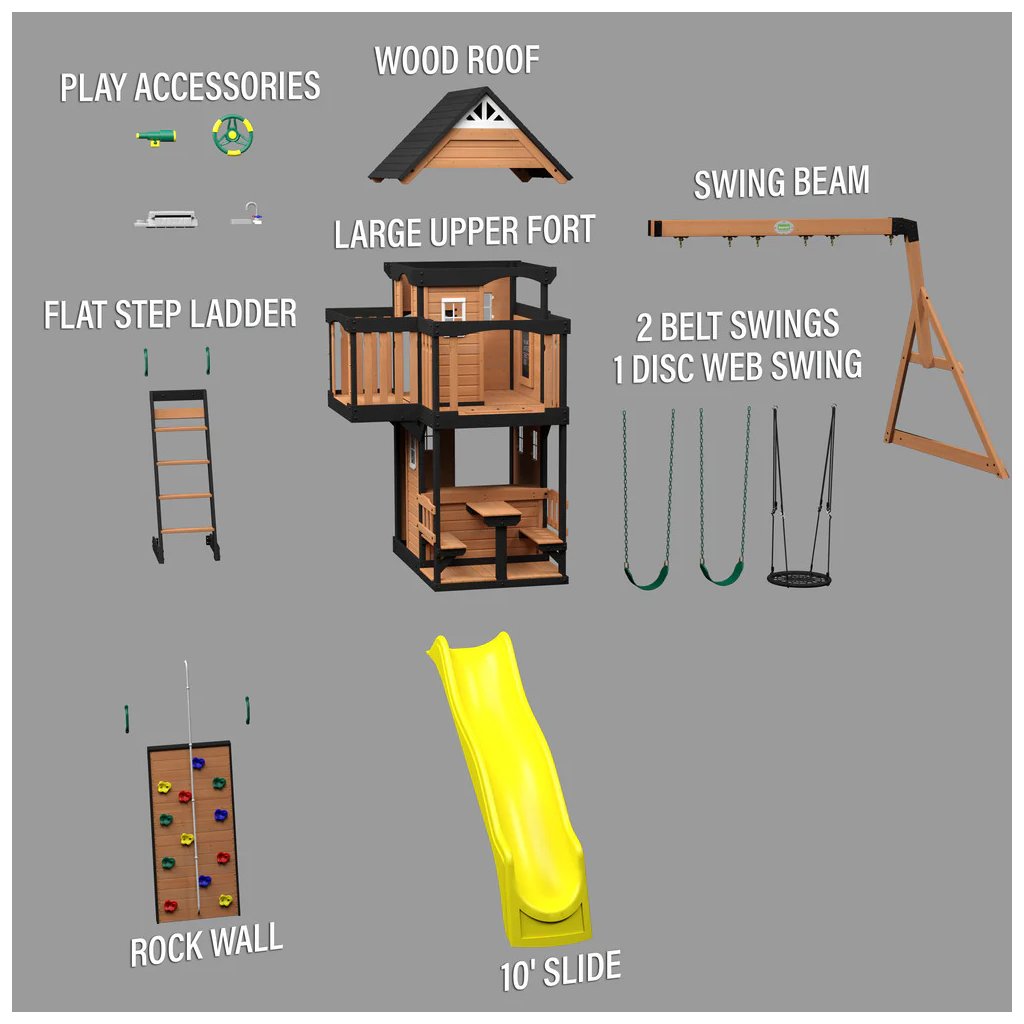 Celá sestava nabízí dětem hodiny aktivní zábavy, dobrodružství a rozvoj fantazie na zahradě po celý rok.