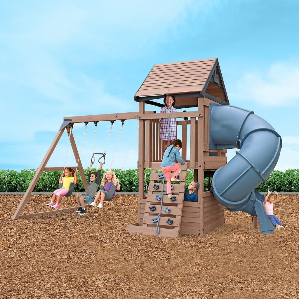Dětské hřiště Maple Ridge patří mezi sestavy velikosti Medium a nabízí bohaté možnosti pohybové i kreativní zábavy.