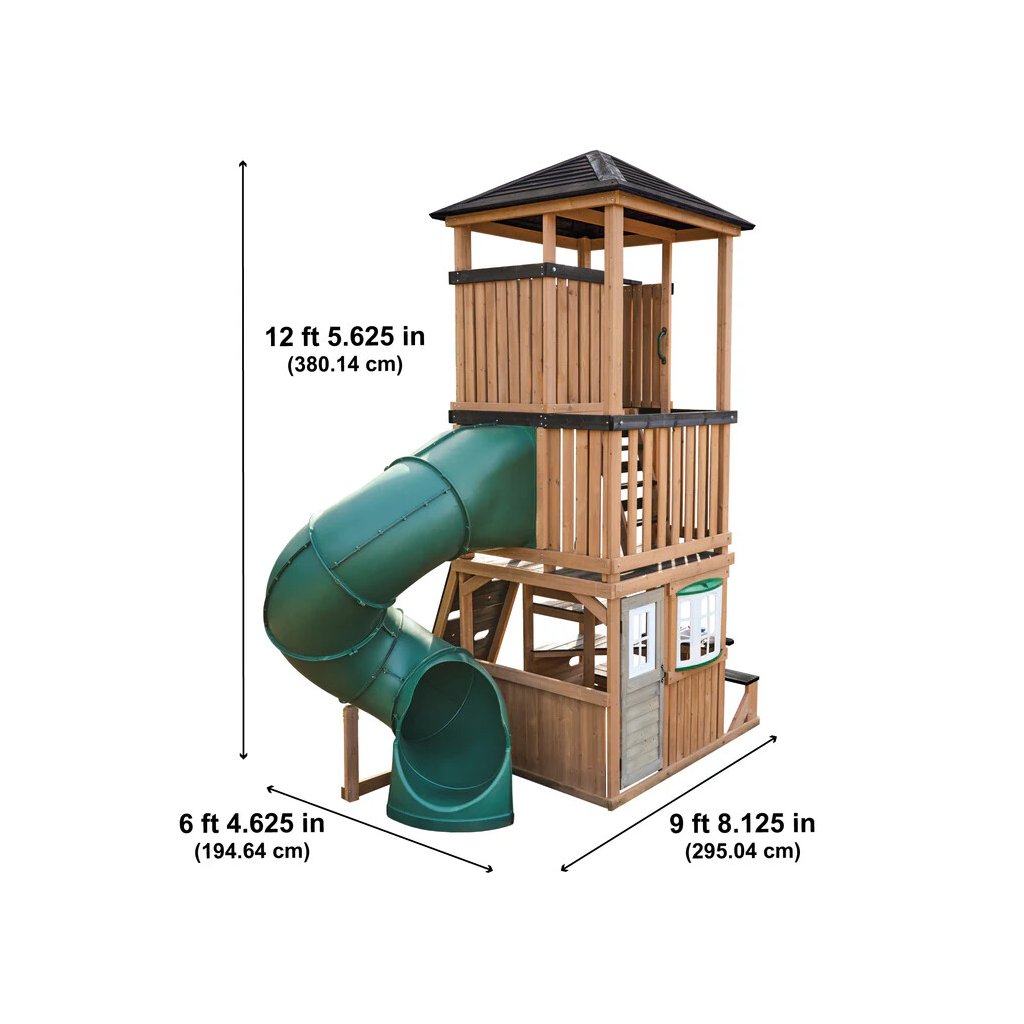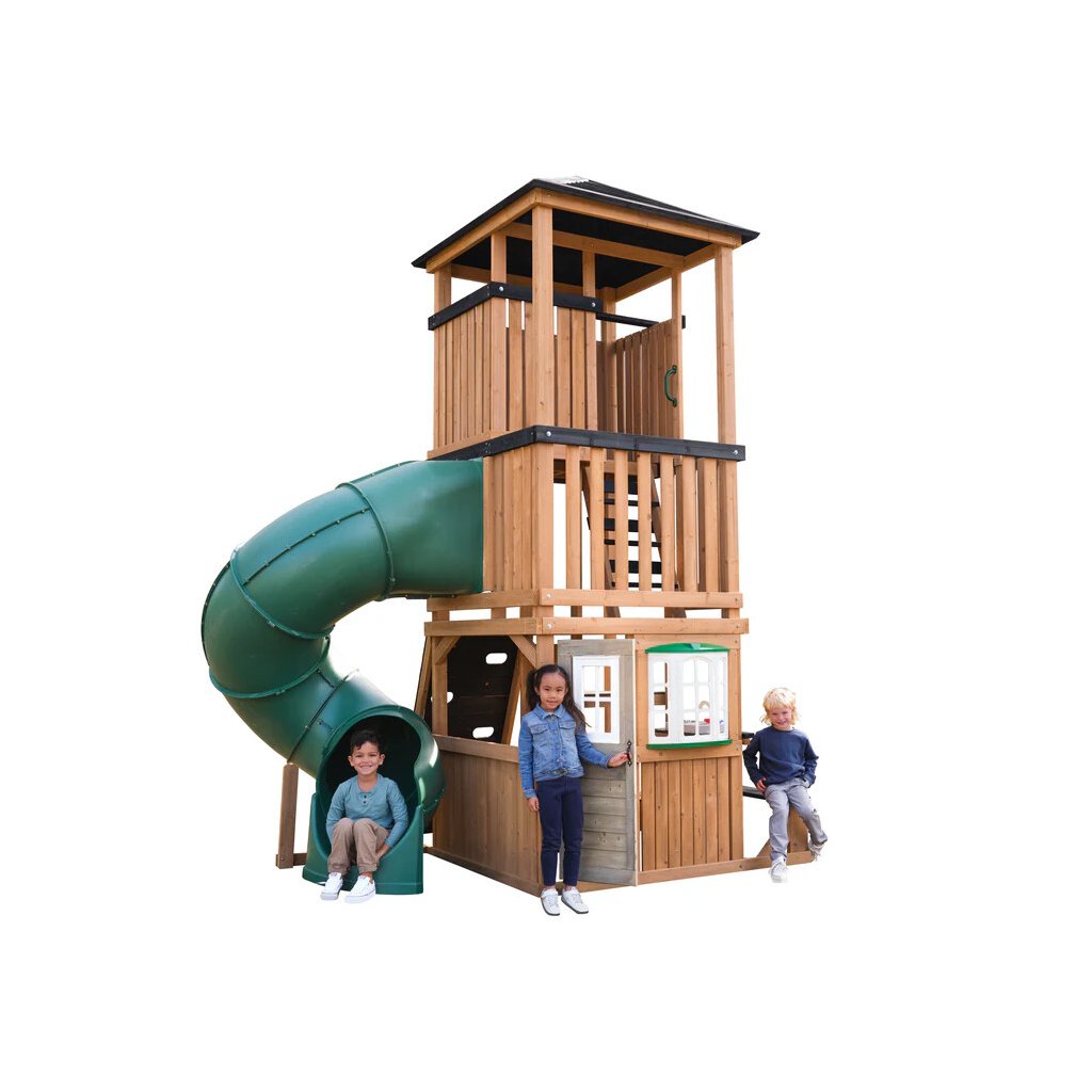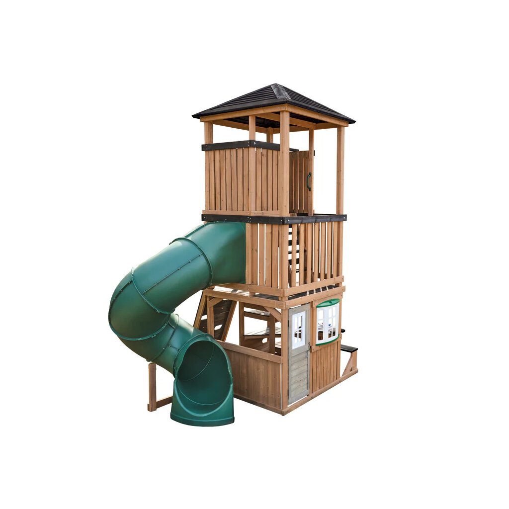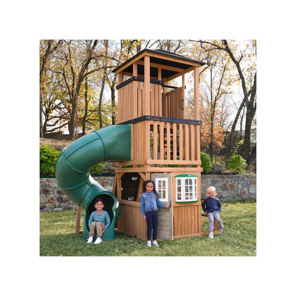 Panorama Tower je výrazné víceúrovňové dětské hřiště, které promění zahradu v místo plné pohybu, radosti a objevování. Dominantou celé sestavy je vysoká věž se zastřešenou vyhlídkou a dlouhý turbo tobogán o délce 365 cm, který je umístěn na podestě ve výšce 150cm dětem nabídne svižnou, zábavnou a bezpečnou jízdu.