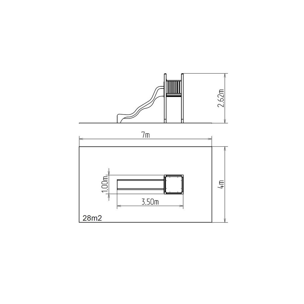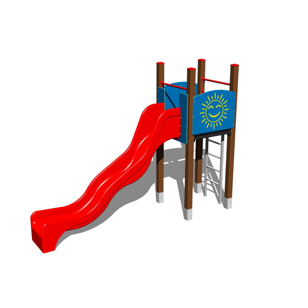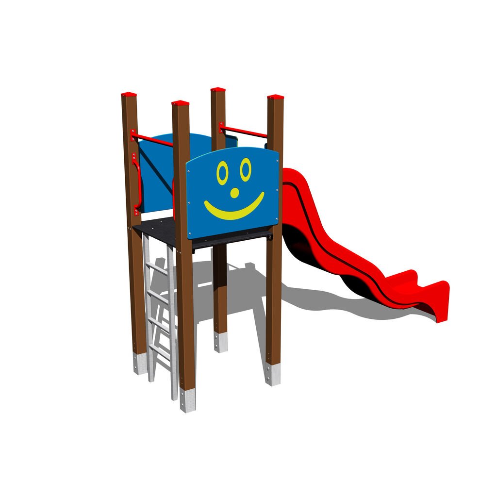 Sestava se skládá z: věže bez střechy - kovová konstrukce, laminátové skluzavky, kolmého žebříku a kovového zábradlí.