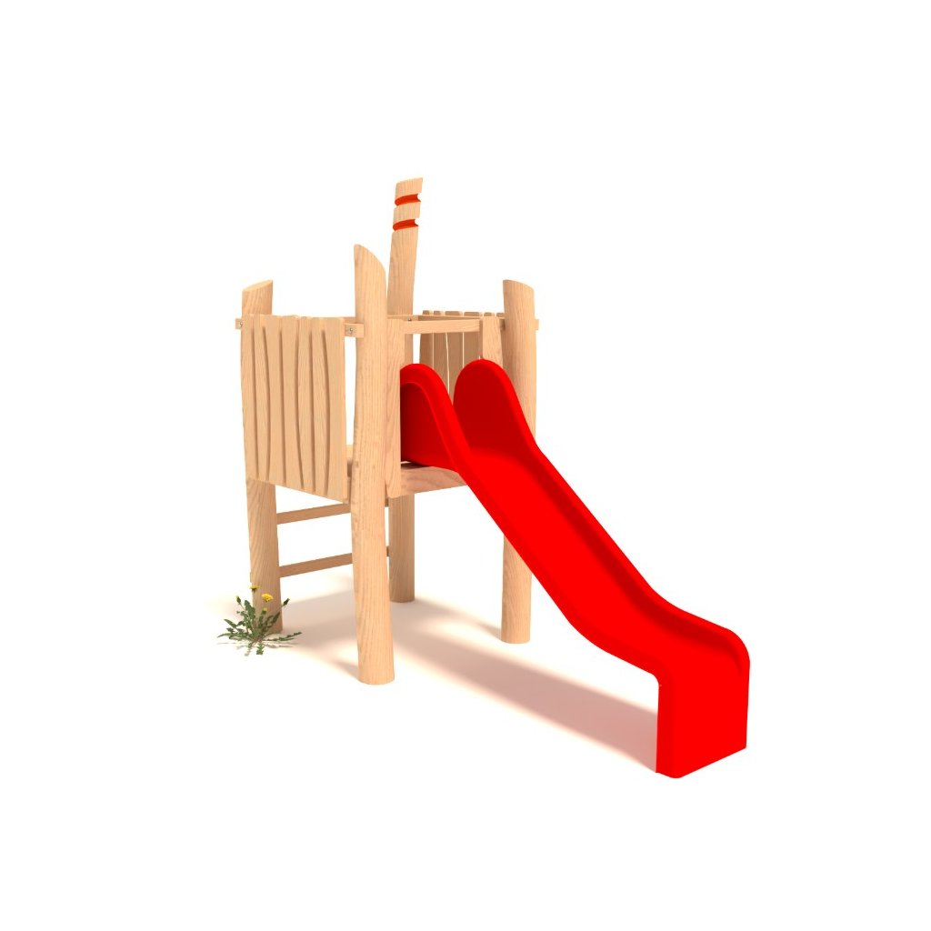 Sestava z akátu se skluzavkou Sali je certifikovaná dle EN 1176 pro veřejná dětská hřiště.