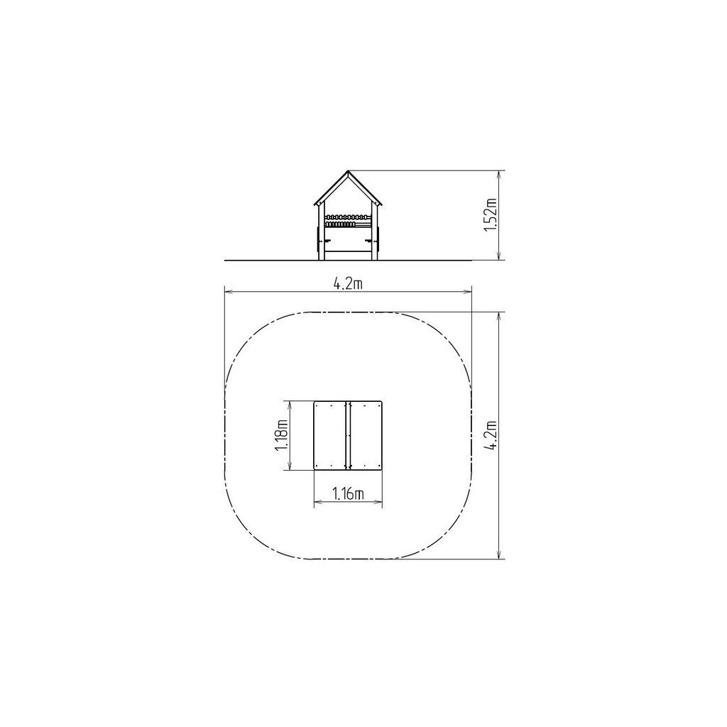 Výška pádu tohoto dětského domečku Bonifác je do 1 m a proto může dětský domek mít jako dopadovou plochu jen udržovaný trávník a není nutné tvořit speciální dopadové plochy. Pokud není na pozemku kvalitní trávník nebo hrozí jeho vyšlapání, doporučujeme zde položit pryžové zatravňovací desky Grass nebo Saf z naší nabídky.