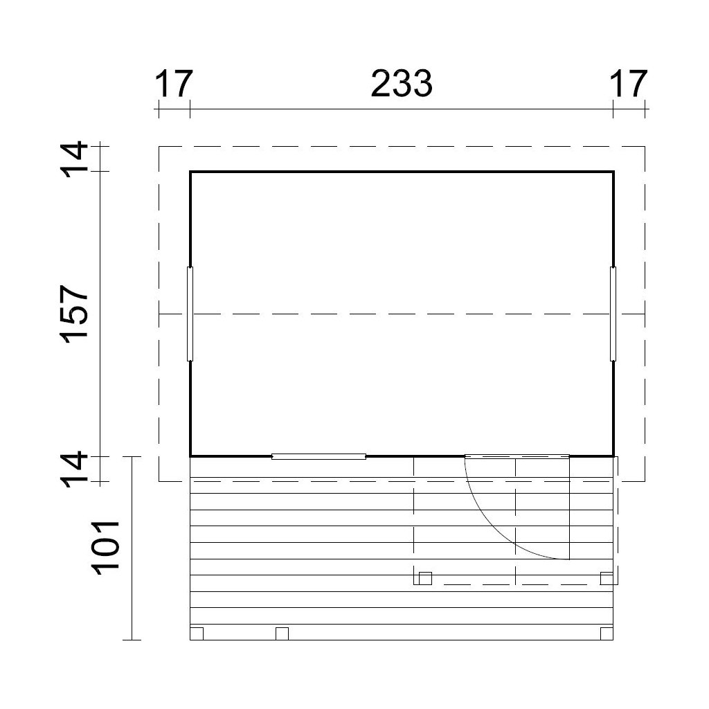 Domeček má 2 okna o rozměru 56 x 56 cm , doplněné okemicemi. Okna jsou vyplněna plexisklem. Vstup do domku je zajištěn dveřmi o rozměru 55 x 112 cm, které se otevírají směrem ven.