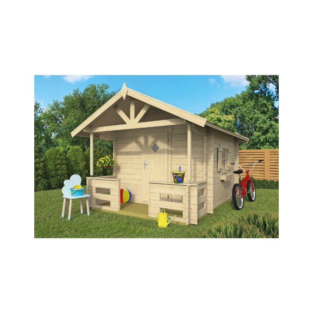 Dětský zahradní domek Marta o objemu přibližně 10,8 m3, vyrobený z kvalitního materiálu, je tvořen masivními dřevěnými stěnami z profilovaného smrkového dřeva o síle 28 mm. Domeček Marii vyniká pevnou konstrukcí a atraktivním designem s praktickou verandou, která rozšiřuje prostor pro dětské hry a odpočinek.