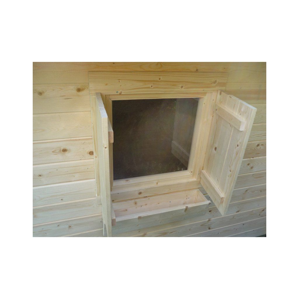 Střechu doporučujeme pokrýt vhodnou střešní krytinou, která prodlouží životnost domečku. Střešní krytina není součástí dodávky. Domek je dodáván v přírodním, nebarveném provedení, což umožňuje jeho barevné přizpůsobení podle vlastních představ.
