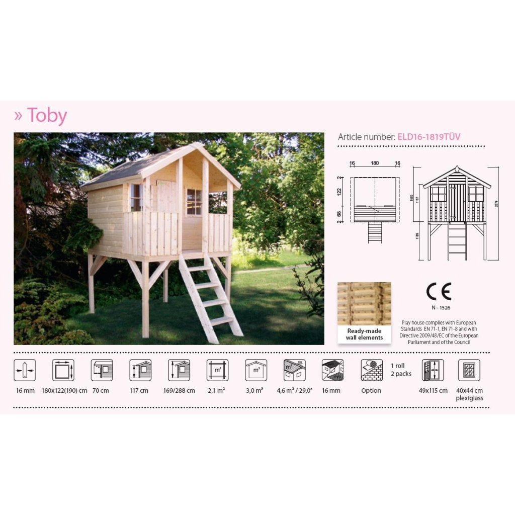 Dětský domeček Toby s prostornou terasou je ideálním místem pro dětské hry a nekonečnou fantazii.