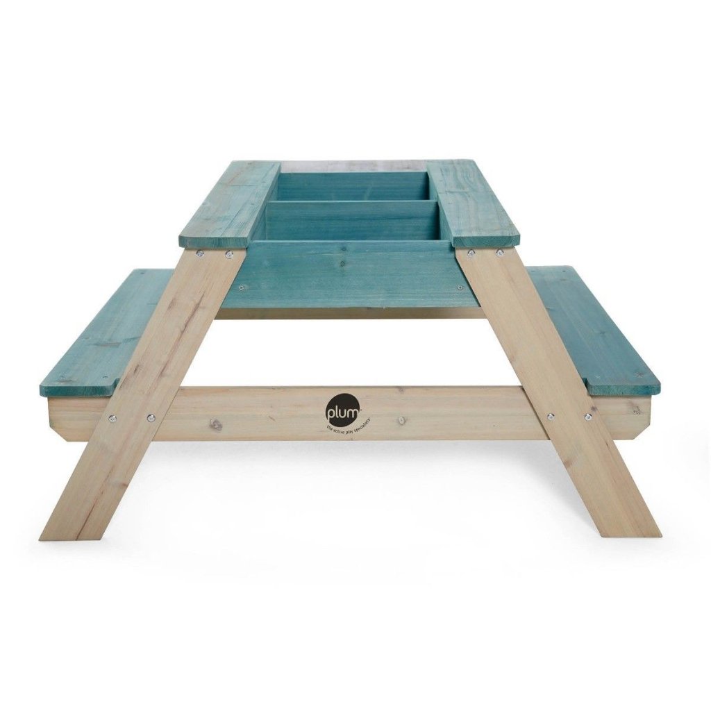 Jednu část stolečku lze využít pro vytváření uměleckých děl z písku, druhou naplňte vodou a užijte si tak spoustu zábavy, u které můžete pohodlně sedět díky dřevěným lavicím.