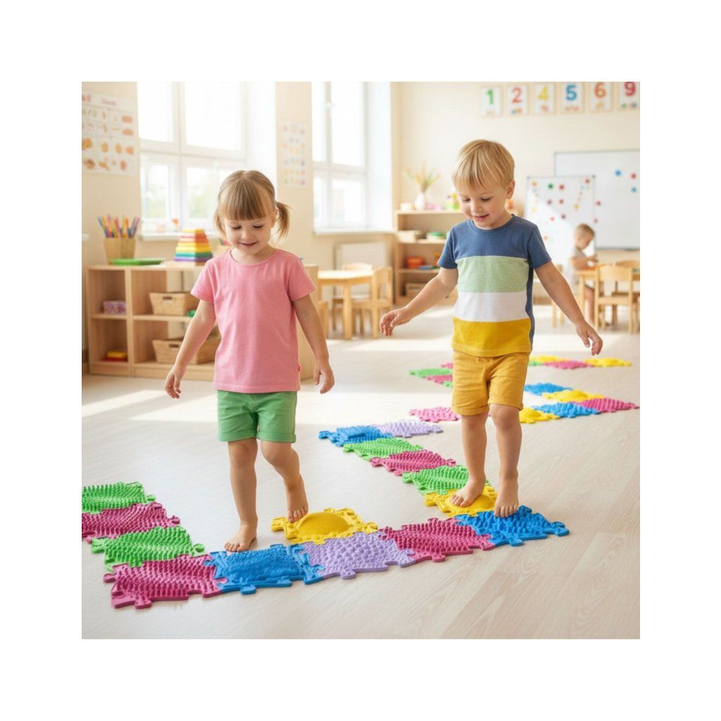 Masážní dětské ortopedické a senzorické podložky PUZZLE PASTEL sada 5 ks
