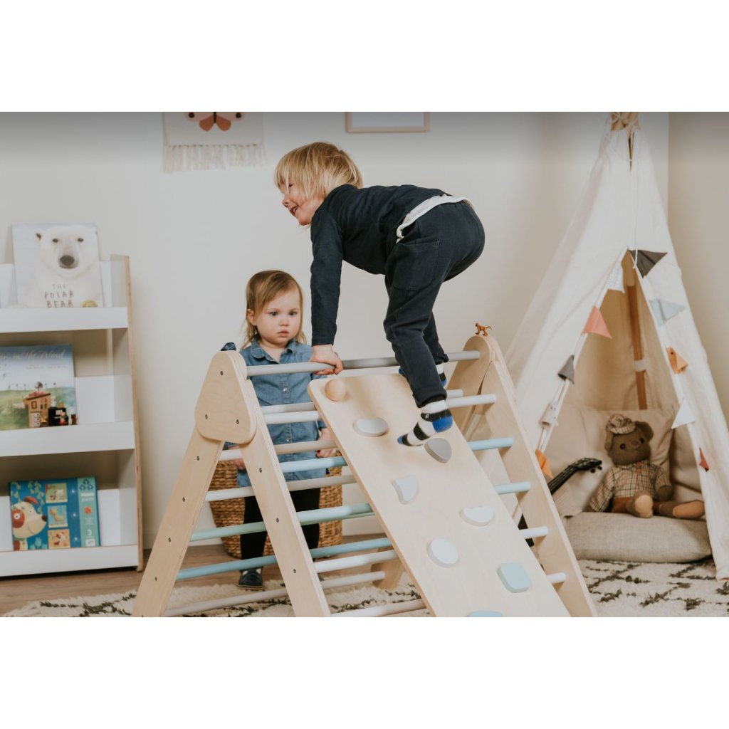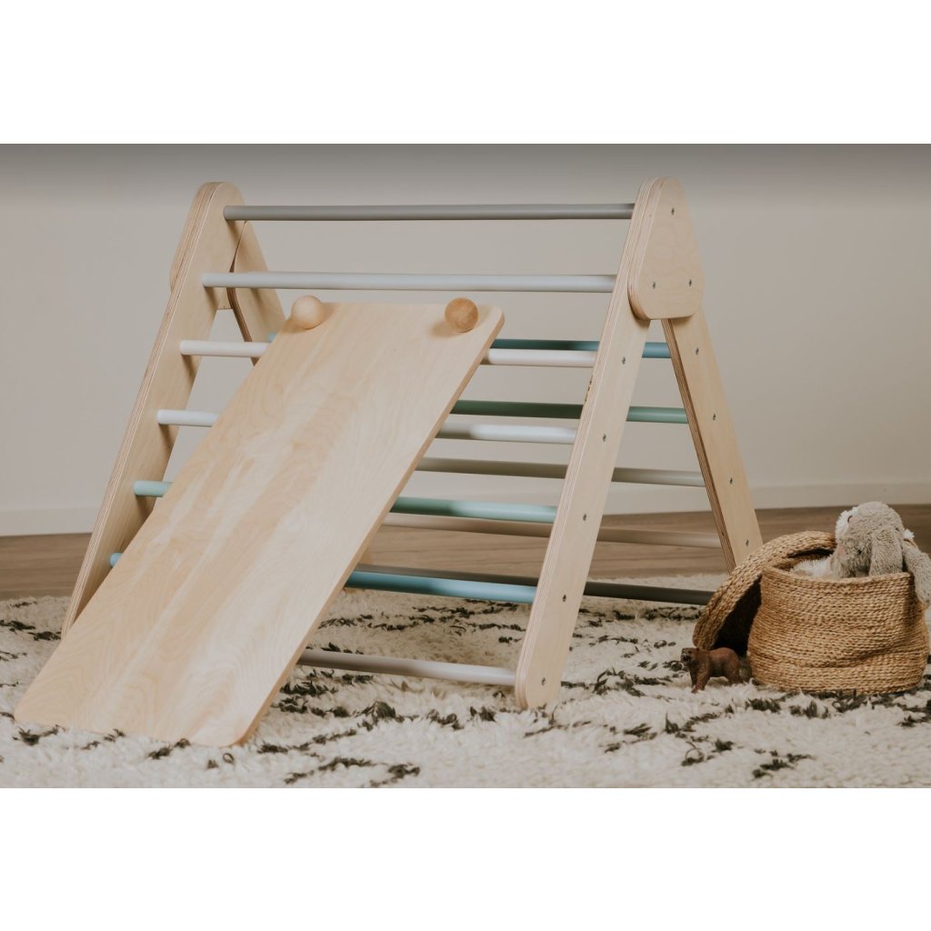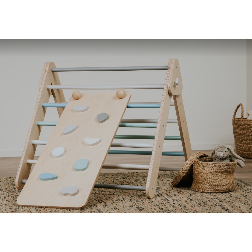 Dřevěné Montessori prkno je skvělým prvkem pro děti všech věkových kategorií. Děti mohou prkno používat různými způsoby v závislosti na jejich věku a schopnostech. Jedna strana prkna je doplněna o barevné slezecí kameny, druhá strana je hladká skluzavka.