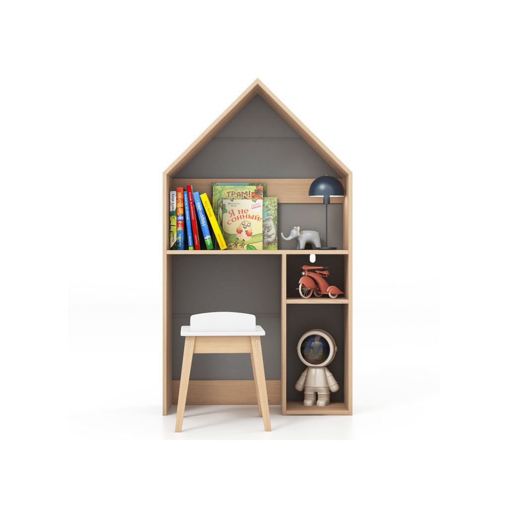 Psací stůl ve tvaru domečku s deskou stolu a ergonomickou židlí splňuje potřeby dětí při čtení, jídle, učení nebo hraní. Mezitím je k dispozici další tabule pro kreslení nebo psaní, což je skvělé pro podporu kreativity a představivosti batolat.