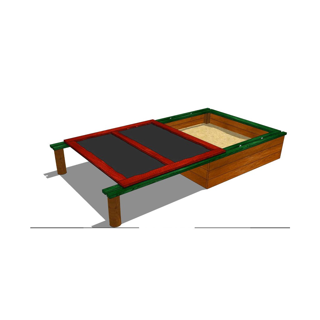 Pískoviště s posuvným krytem z akátu - Škatulka je vhodné pro MŠ, města, obce a restaurace, hotely atd. Velkou výhodou tohoto pískoviště je možnost posunování pevného krytu mimo pískoviště a zpět, nemohou do písku vnikat zvířata a tento písek znečišťovat. Rozměr pískoviště bez odsunutého krytu je 2 x 1,9 m. Materiál pískoviště je akátové (dubové) dřevo, které je broušené a dále natřené dvěma nátěry slabovrstvou lazurou. Jenoduché posunování pevného krytu je zajištěno pomocí rolny.