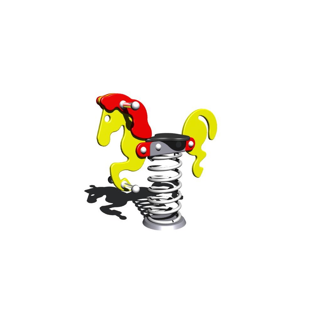 Veselá plastová pružinová houpačka Koník - B je vyrobena z kvalitní oceli a jednovrstvého HDPE plastu v zajímavém barevném provedení. Tato pružinová houpačka pobaví svým designem, děti mohou plout na vlnách své fantazie - "a projet se na koníkovi". Pružinová houpačka jistě vhodně doplní zahrady mateřských škol a dětských center, může být ale i lákadlem u komerčních objektů - firem, restaurací, hotelů, penzionů, a pod. Pružinová houpačka Koník - B je upevněna na kvalitní pružině, která je ukotvena do terénu pomocí masivní pozinkované kotvy a spodní desky, kotva se zahrabává (zemina se pečlivě uhutní). Konstrukce pružinové houpačky je doplněna deskami z HDPE plastu, který je velice odolný a stálobarevný. Tato pružinová houpačka nepotřebuje žádnou větší údržbu. Výška pádu pružinové houpačky koník - B je 0,5 m a proto nemusí mít dopadové plochy tlumící pád, stačí zde udržovaný trávník. V případě umístění pružinové houpačky na zpevněnou plochu (např. beton, asfalt, a pod.) nebo pokud hrozí vyšlapání trávníku v okolí pružinové houpačky, doporučujeme zde položit pryžovou podložku pod pružinové houpačky, viz. související zboží. Pružinová houpačka Koník - B je certifikovaná dle EN 1176 pro veřejná dětská hřiště.Doplňkové parametry