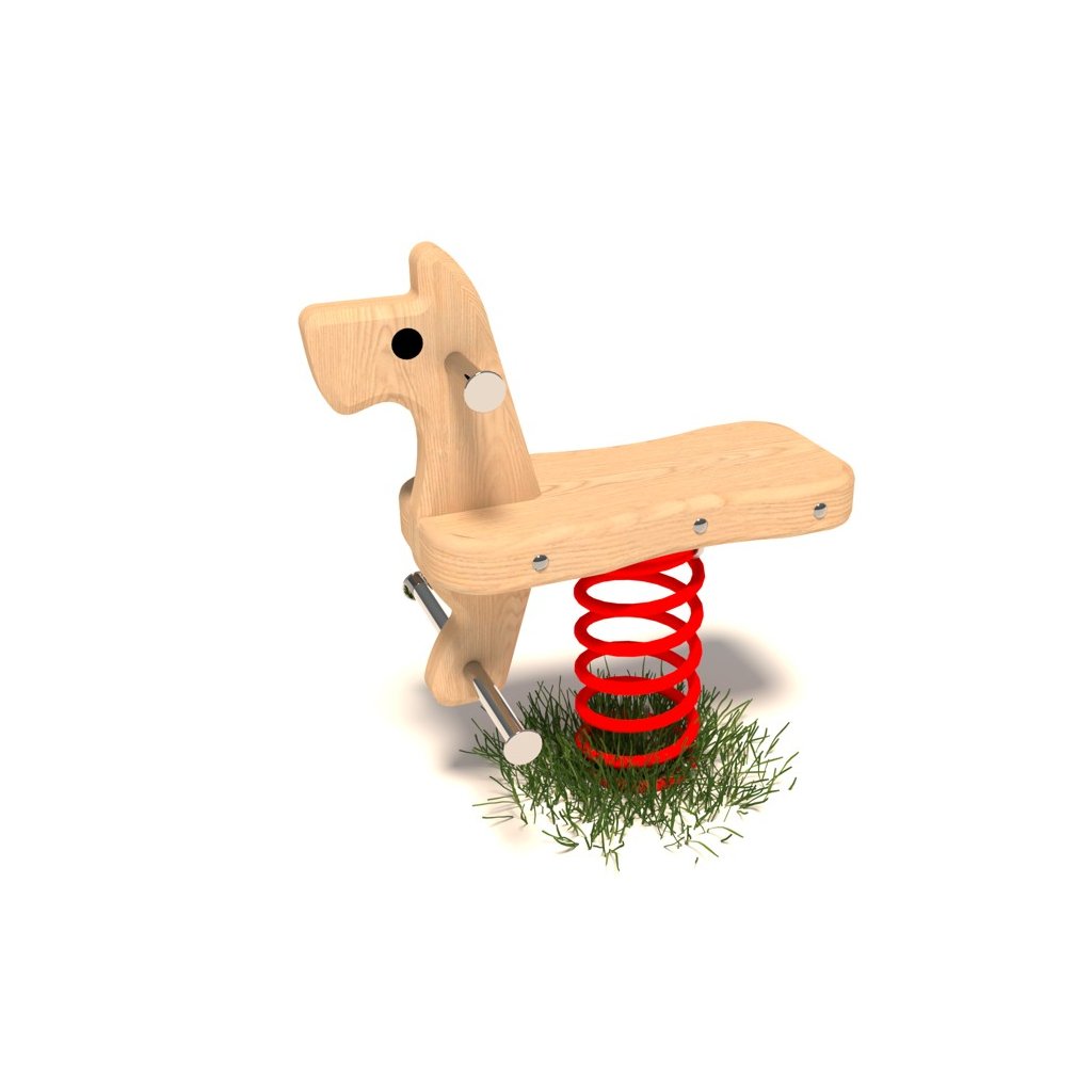 Pružinová houpačka z akátu - Pes je certifikovaná dle EN 1176 pro veřejná dětská hřiště.