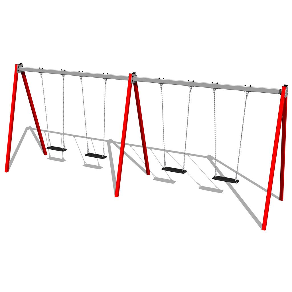 Řetězová čtyřhoupačka celokovová s výškou pádu 1,5 m je pevná houpačka umožňující houpání čtyř dětí ve věku od 3 do 14 let najednou. Uplatnění tato houpačka najde na dětských hřištích v obcích a městech, ale vhodně doplní i zahrady mateřských a základních škol. Kvalitní houpačka najde své uplatnění i u komerčních objektů - restaurací, hotelů, penzionů...Tato kovová verze houpačky je téměř bezúdržbová a velmi dobře odolává vandalům.